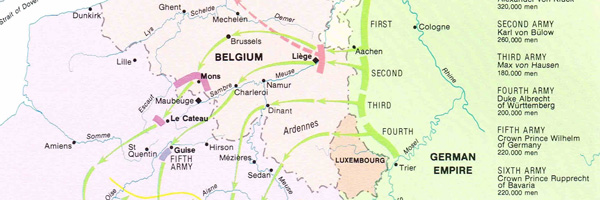18 AUG De grote Duitse opmars start. Koning Albert beveelt een snelle aftocht van het leger naar de vesting Antwerpen.